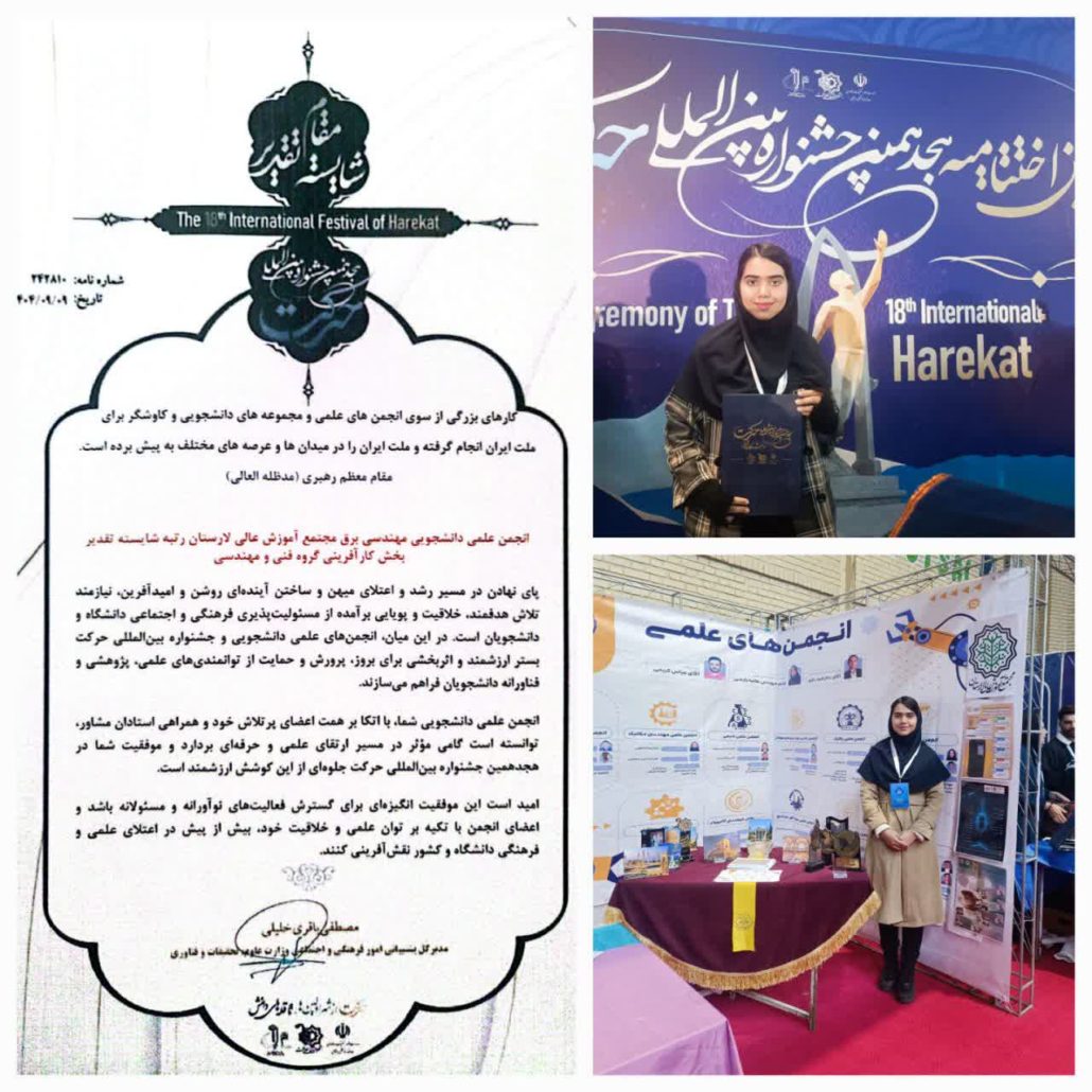 درخشش انجمن علمی مهندسی برق مجتمع آموزش عالی لارستان در هجدهمین جشنواره بینالمللی حرکت